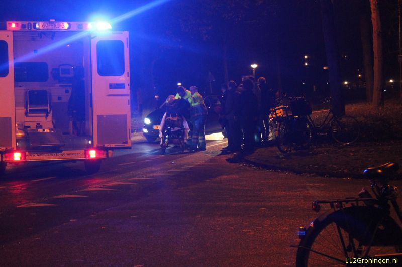 Woensdagmorgen een aanrijding tussen een auto en een fietsster op de kruising Hoendiep /Atoomweg.