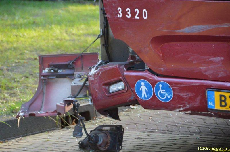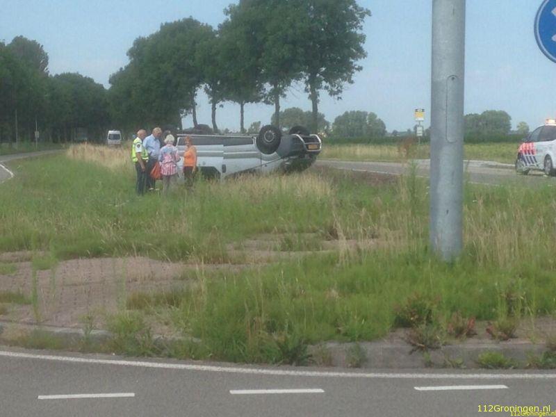 Op de N361 bij Leens is zaterdagmiddag een busje door een nog onbekende oorzaak over