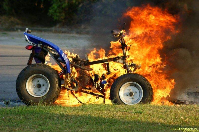 Een Quadbestuurder is vrijdagavond ontsnapt aan een vlammenzee. De man reed met zijn Quad over