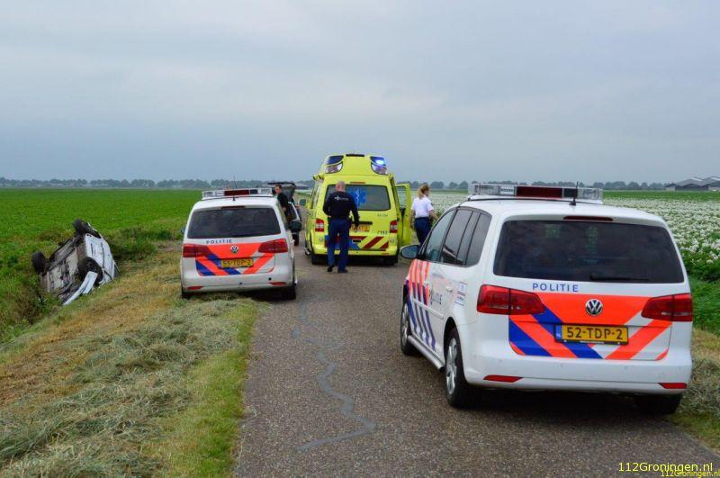 Dinsdagmorgen is een automobilist met zijn auto over de kop in de sloot beland aan