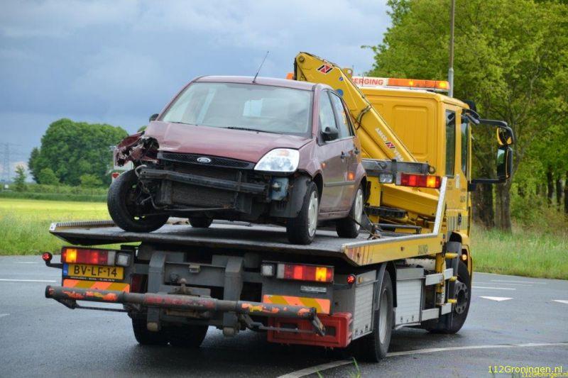 Bij een aanrijding op de kruising Burgemeester Nautastraat met de Burgemeester Venemastraat in Muntendam zijn
