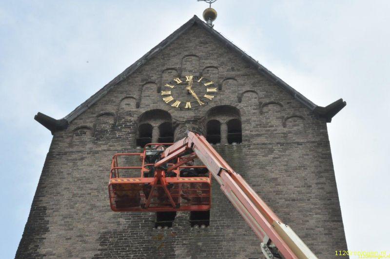 Een groepje militairen van de Landmacht heeft de verlichting van de klok van de Walfriduskerk
