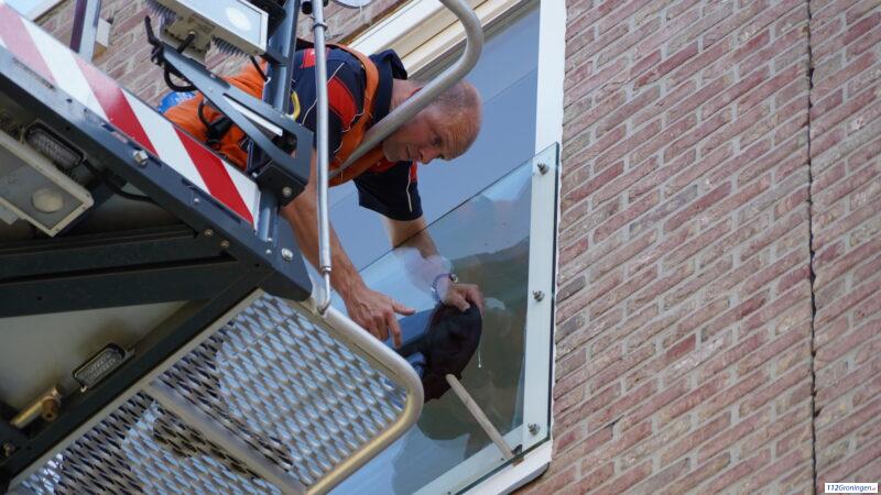 Brandweer bevrijd zwaluw bij appartementencomplex de Lunettenhof