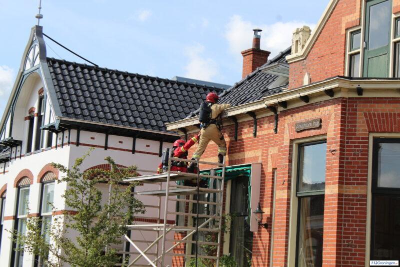 Dak brand aan de Oosterstationsstraat in Uithuizen