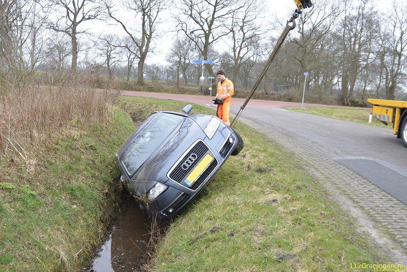 Tegen het eind van de vrijdagmiddag is een auto de sloot in gereden bij de