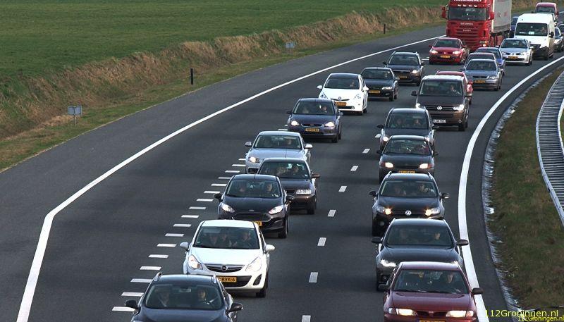 Honderden hebben meegedaan aan de langzaamaan actie in Groningen zaterdagmiddag. Op de A7 ontstond hierdoor