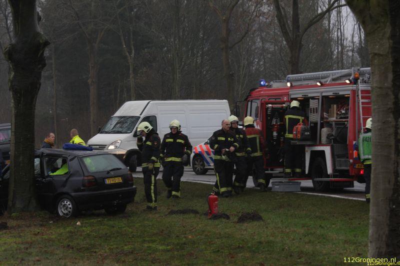 Een 59-jarige inwoner van Nieuw Buinen raakte zondagavond gewond doordat hij met zijn auto tegen