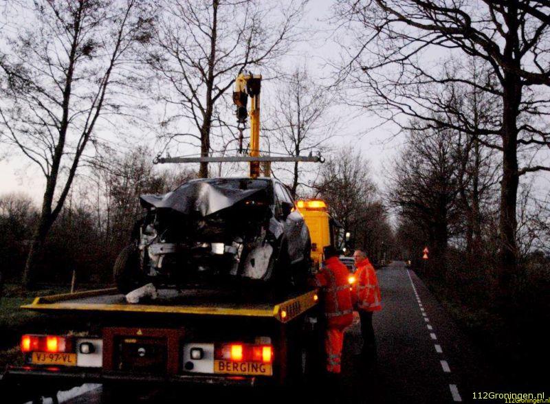 Op de Jouwerweg in Lucaswolde is tegen het eind van de zaterdagmiddag een auto total