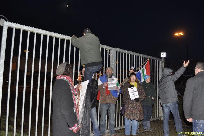 Actievoerders van Schokkend Groningen hebben zondagmiddag na hun actie in 't Zandt nog een NAM-locatie