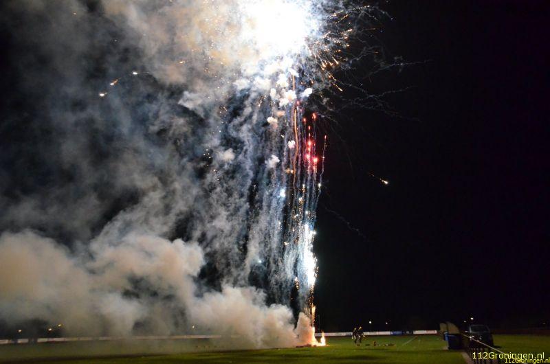 Vuurwerkshow op voetbalveld VEV’67 in Leek (Video)