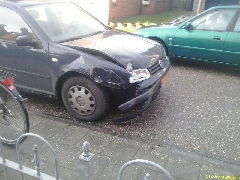 Zaterdagmorgen rond tien uur reed een blauwe VW Golf tegen een verkeersbord en een lantaarnpaal