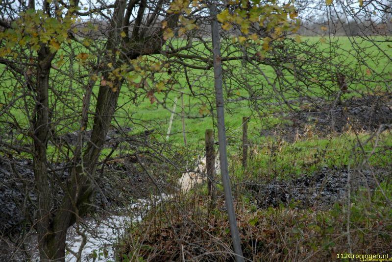 Dinsdagmorgen moest autoberger Faber uitrukken voor een auto te water aan het Smeltenpad in Warffum.