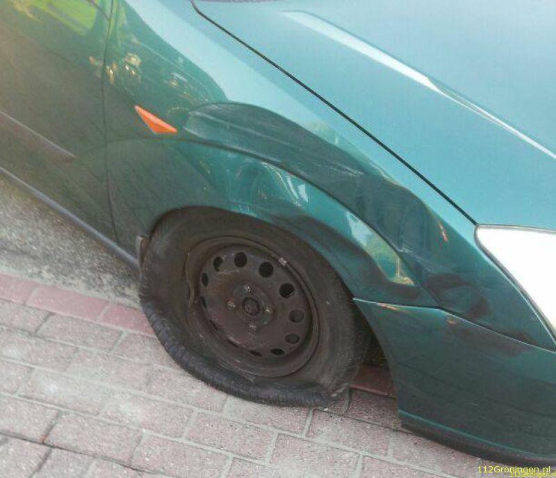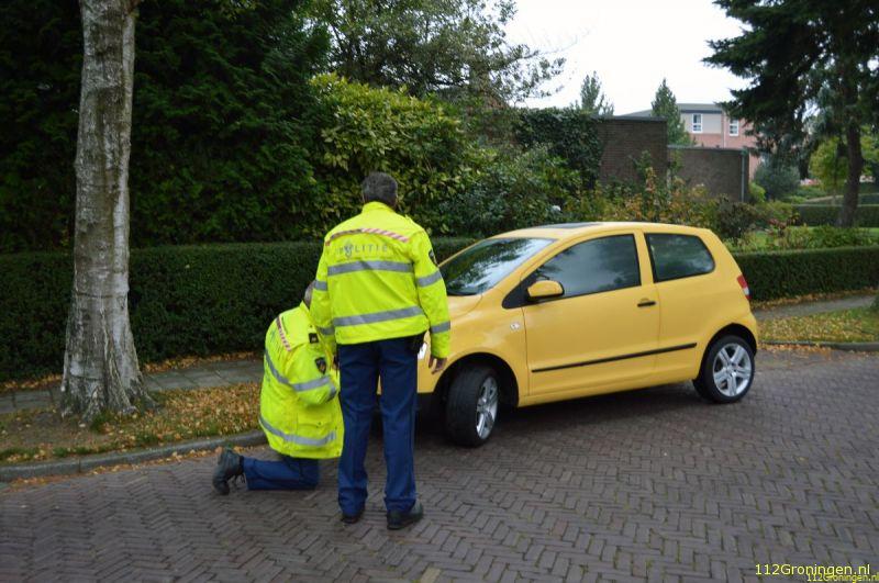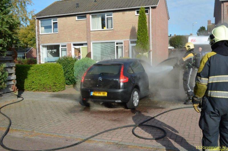 Een personenauto die geparkeerd stond op een oprit bij een woning in Muntendam is zondagochtend