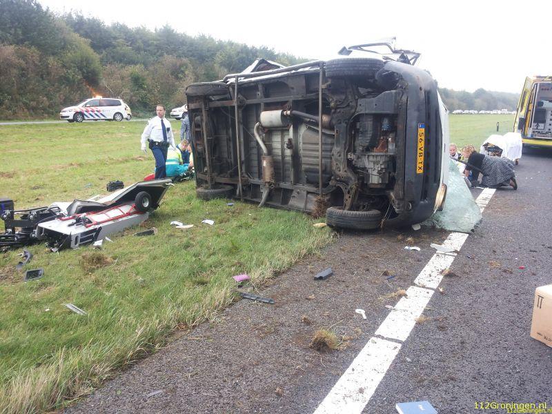 Zaterdagochtend 5 oktober raakten drie mensen gewond toen het busje waarin zij zaten over de