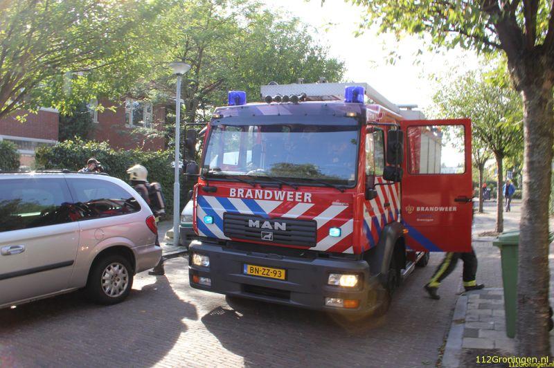 De brandweer van Groningen moest met twee voertuigen met spoed uitrukken voor een dakbrand bij