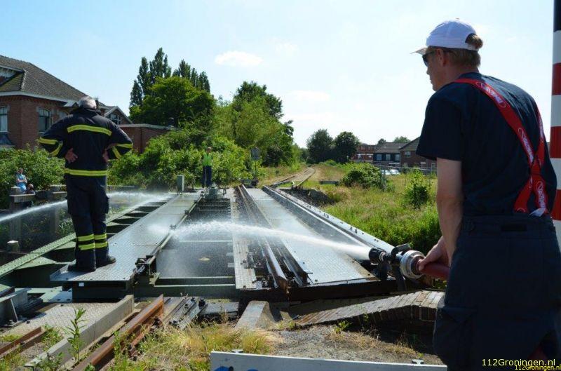 Brandweer koelt spoorbrug in Veendam