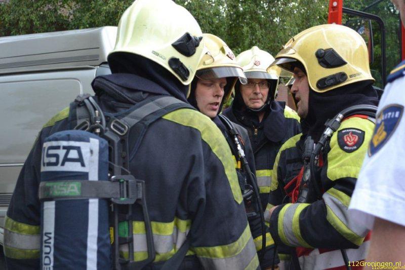 Brandweer geeft oefening voor Politie in Leek