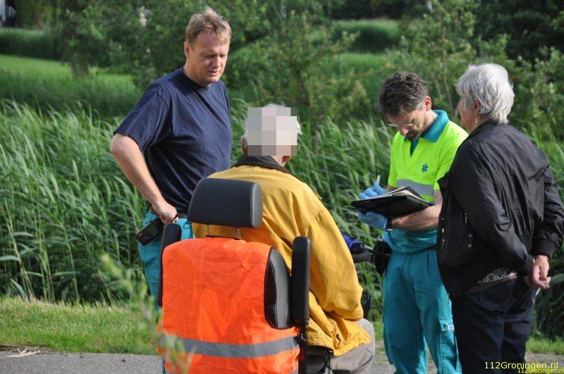 Maandagavond om 18:40 uur is een oudere meneer met zijn scootmobiel(3-wieler) van een schuine kade