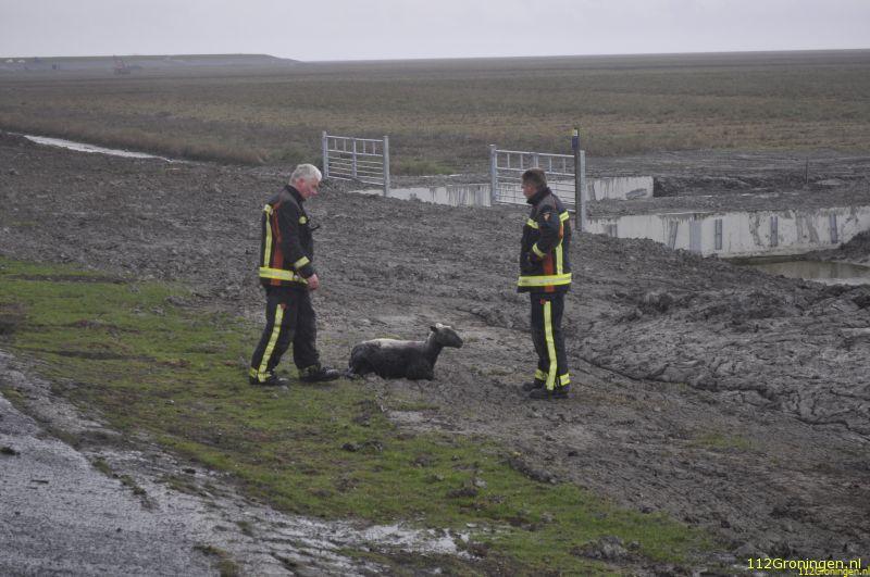 Maandagmorgen werd de brandweer van Usquert opgepiept voor een schaap in problemen op de MD
