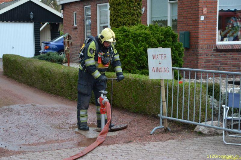 Om even voor 12 werd de brandweer van Leek opgeroepen voor een gaslek aan de