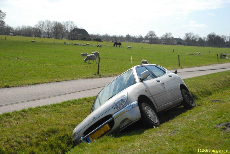Een Marumse automobiliste is vanmiddag met haar auto uit koers geraakt.