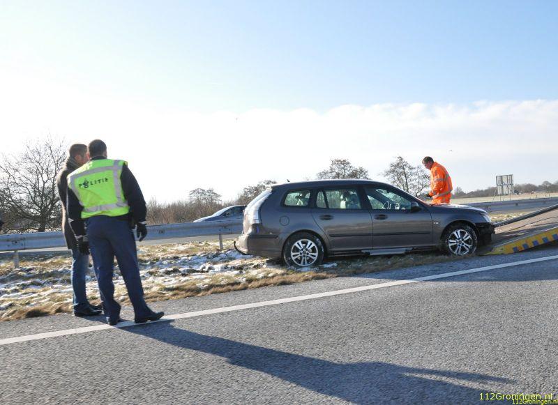 Dinsdagmorgen is door onbekende oorzaak een automobilist op de A7 t.h.v Nuis in de vangrail