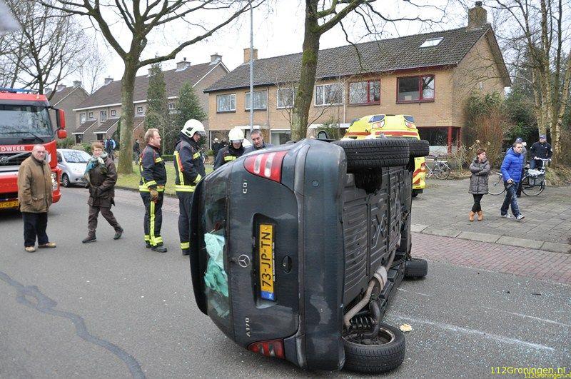 Op de Helmerdijk in Paterswolde is maandagmiddag een automobilist op een geparkeerd staande auto gebotst.