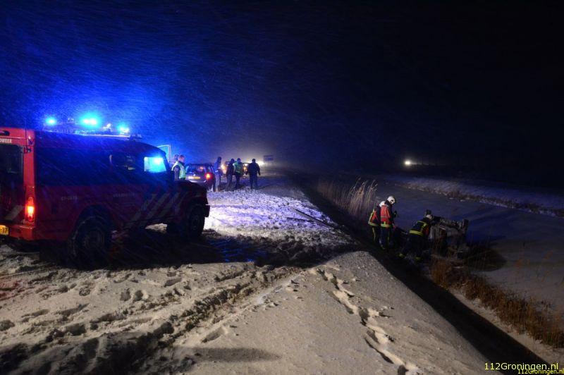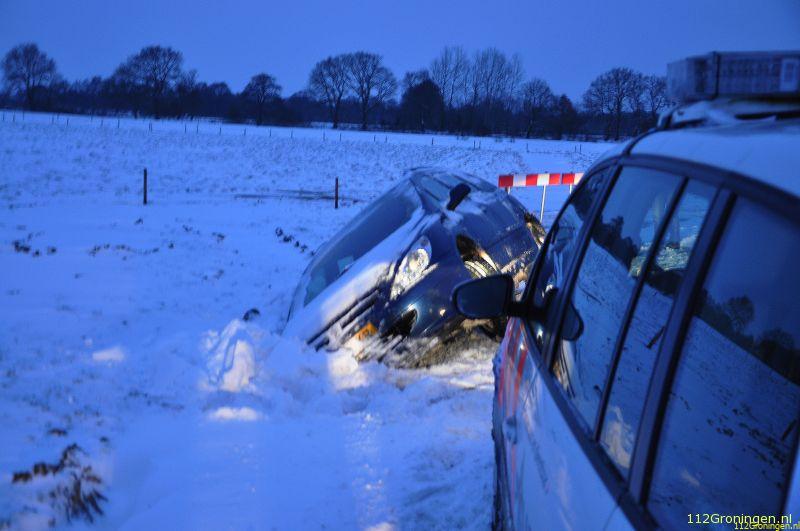 Auto op Boterdiep & Glijpartij Eemshavenweg