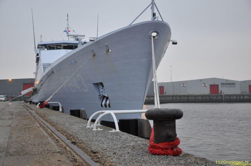 Het patrouilleschip Hr. MS. Groningen is gister in Delfzijl door Damen Schelde Naval Shipbuilding (DSNS)