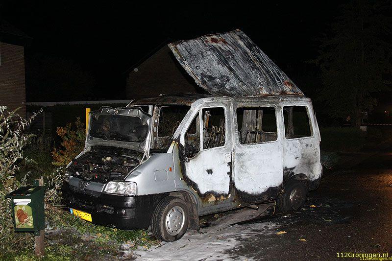 Bestelbus ontploft in Bellingwolde, vier gewonden
