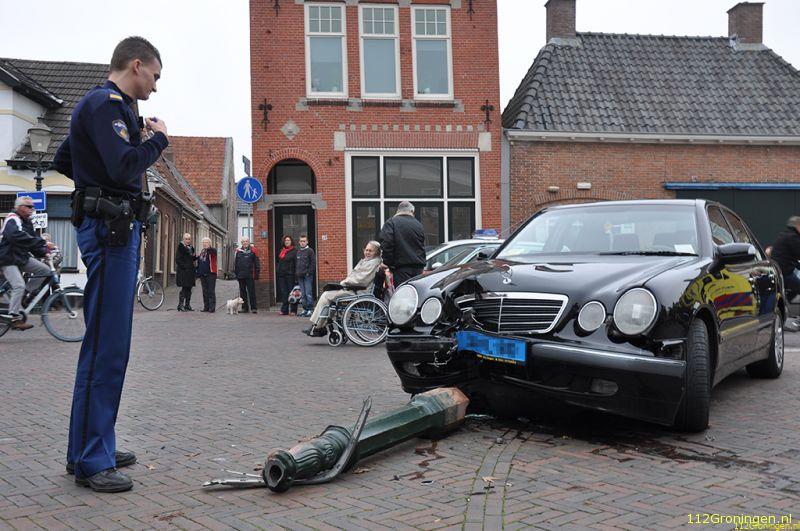 In de Wijkstraat in Appingedam is dinsdagmiddag een taxi tegen een lantaarnpaal gereden nadat deze