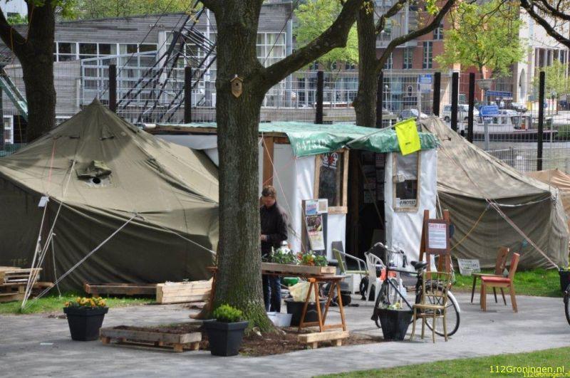 Bewoners van het Occupy-kamp aan de Westerhaven in Groningen waren zondag begonnen met de ontmanteling