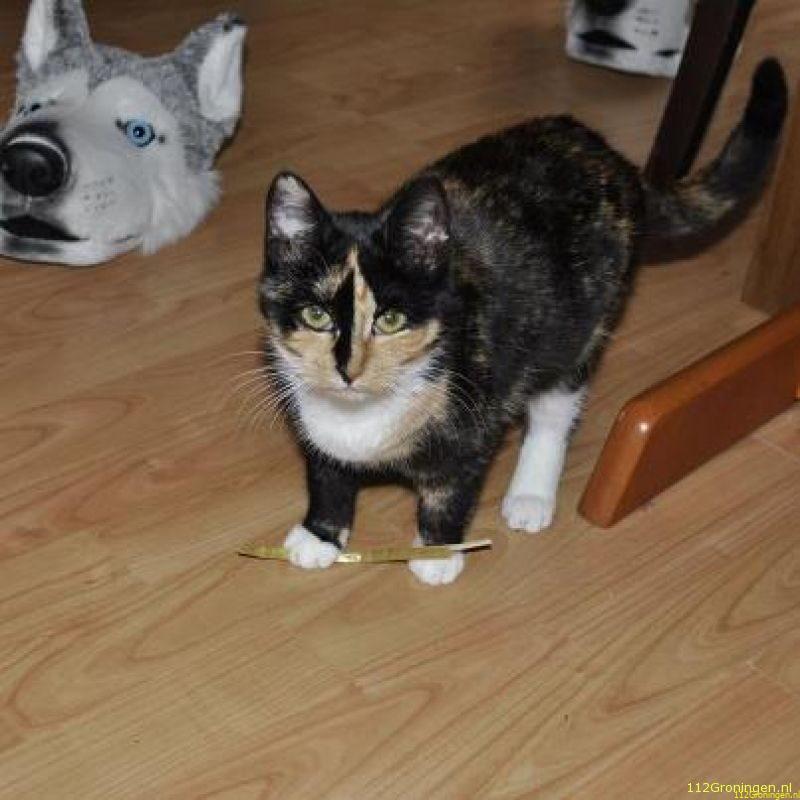 Deze poes(foto) is vermist van de Reigerstraat in Scheemda. Het betreft een 3-jarige poes, met