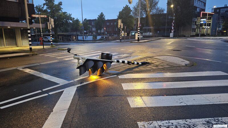 Verkeerslicht omver gereden in Groningen
