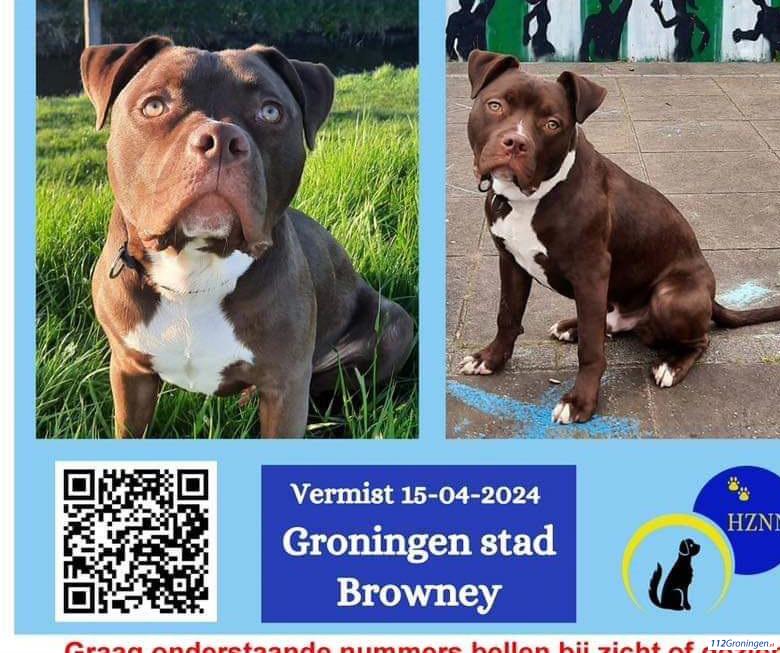 Groningen – Vermist Browney, Xl Bully pup van 8 maanden, ongecastreerde reu. Kleur bruin met