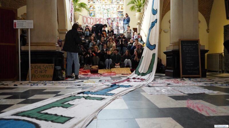 Filmpjes maken van protesten in RUG-gebouwen mag toch, wel voor zevenen de deur uit en blijven praten