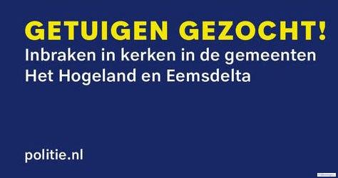 Zeerijp – De politie doet onderzoek naar meerdere inbraken in kerken in de gemeenten Het