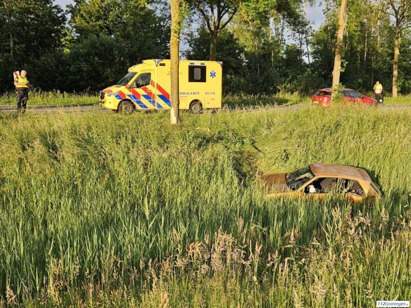 Ter Apelkanaal – Zondagavond is een automobilist met zijn voertuig in een sloot beland aan