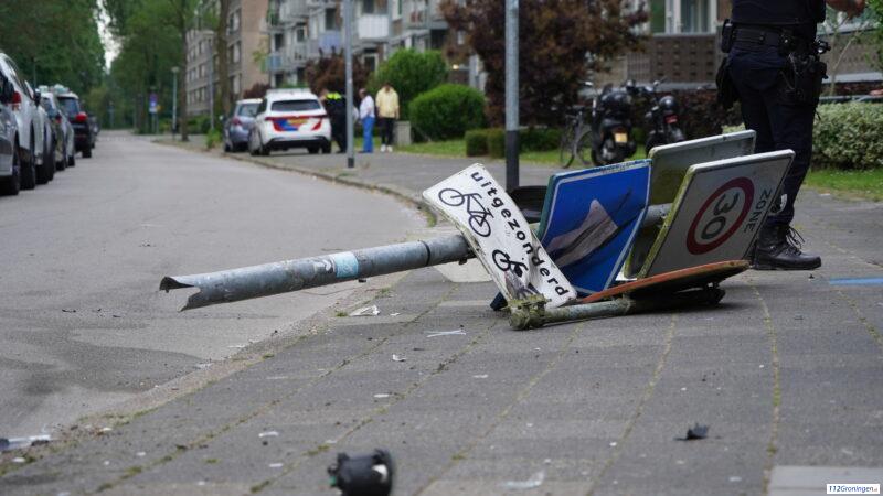 Auto rijd op de Hora Siccemasingel een lantaarnpaal omver