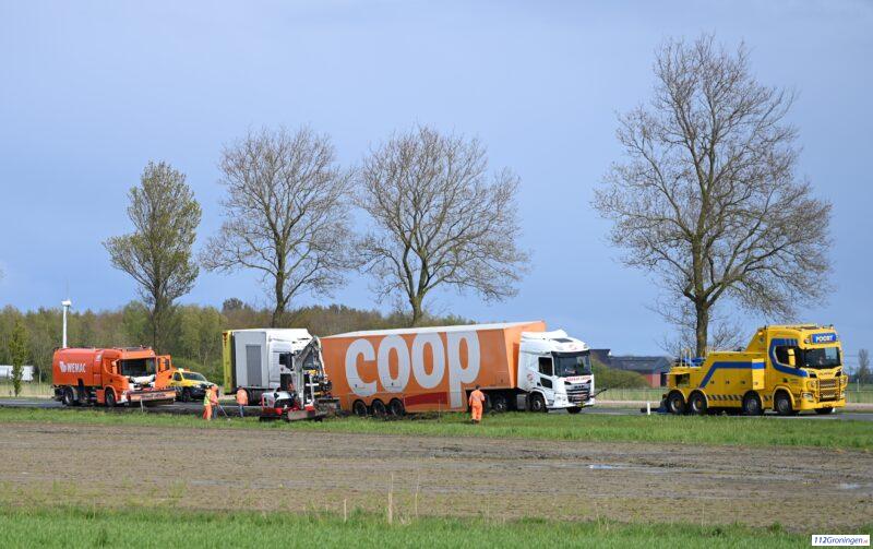 Vrachtwagen raakt in berm nabij Uithuizermeeden