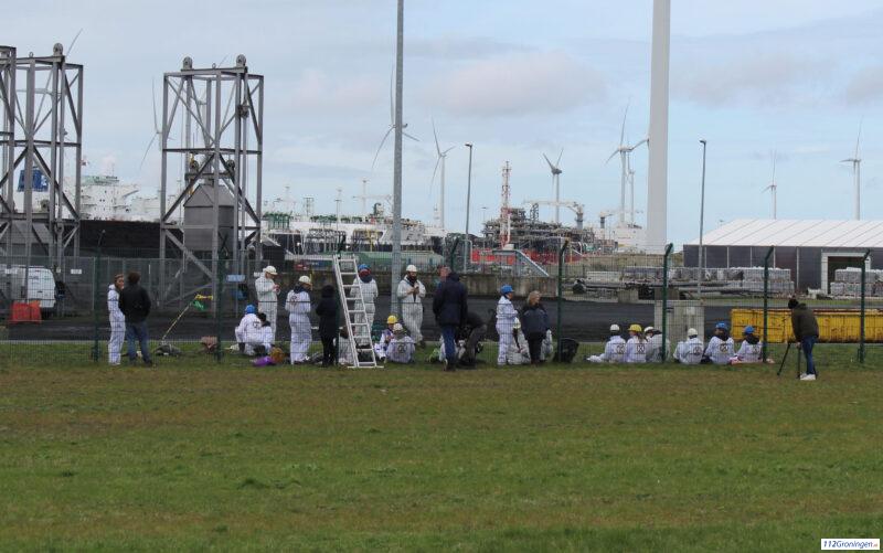 Eemshaven – Een groep demonstranten van Extinction Rebellion voert momenteel actie bij de kolencentrale van