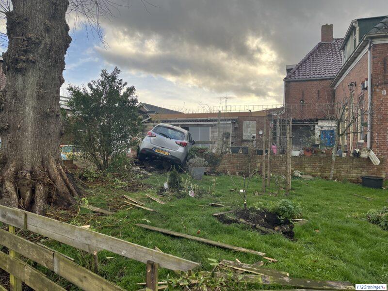 Auto belandt in voortuin woning Winschoten