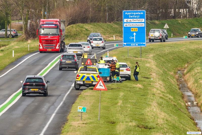 Appingedam – Zaterdagmiddag heeft zich een ongeval voorgedaan op de N33 vlak voor Appingedam. Niemand