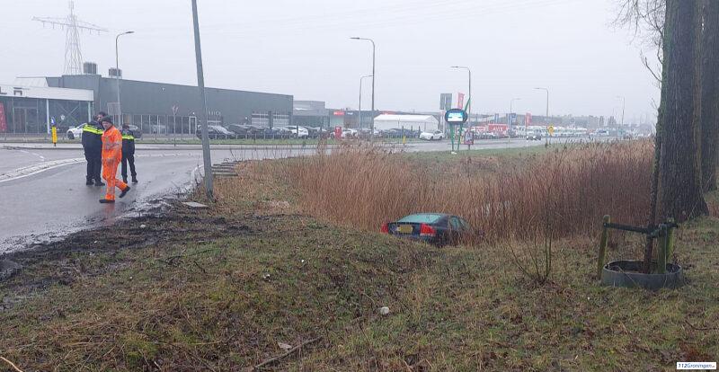 Auto belandt in sloot bij Driebond door oliespoor en modder