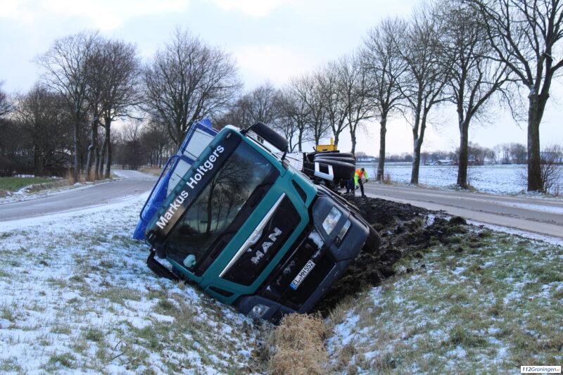Usquert – In de buurt van Usquert is een Duitse vrachtwagenchauffeur met zijn voertuig in
