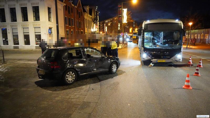 Groningen- Op de kruising Schuitendiep/Gedempte Kattendiep heeft een forse aanrijding plaatsgevonden tussen een auto en