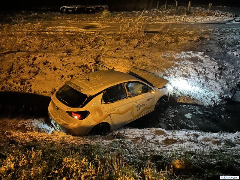 Auto in sloot bij Grootegast:`leek wel een ijsbaan`op de openbare weg