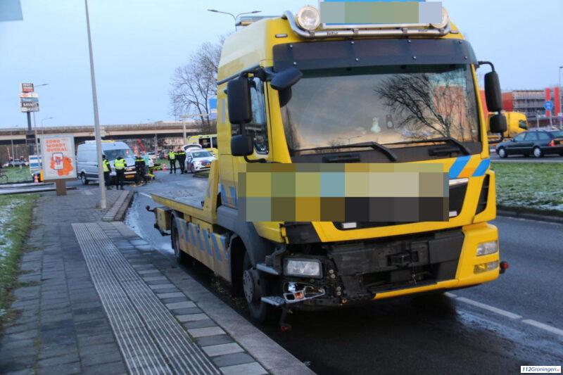Bergingsvoertuig krijgt zelf een aanrijding op het Hoendiep