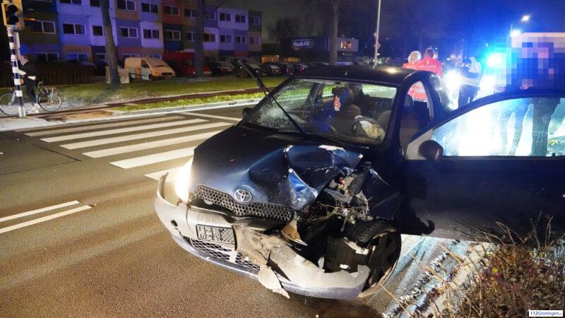 Groningen- Op de kruising Schuitendiep/Gedempte Kattendiep heeft een forse aanrijding plaatsgevonden tussen een auto en