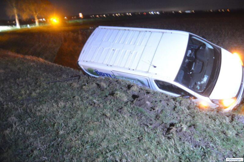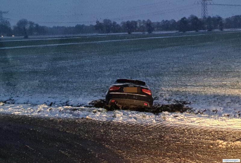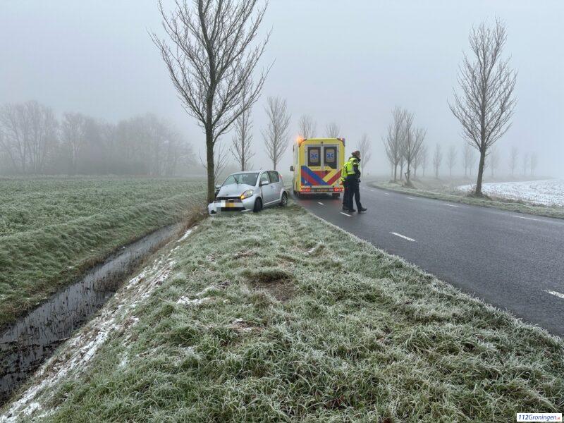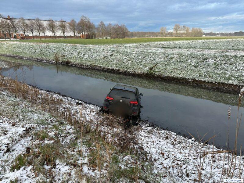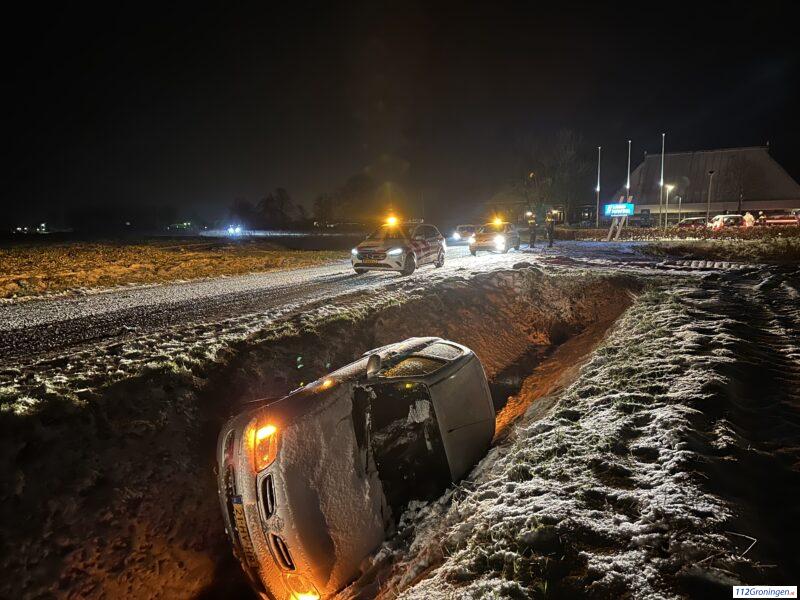 Auto in sloot bij Grootegast:`leek wel een ijsbaan`op de openbare weg